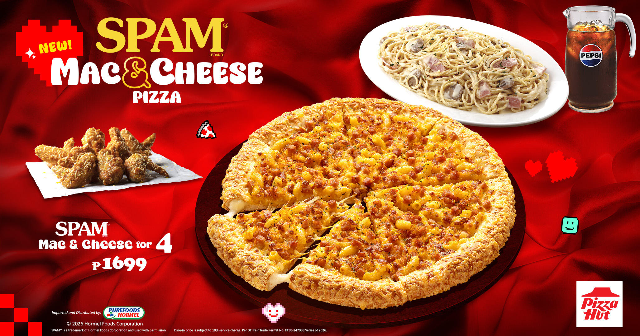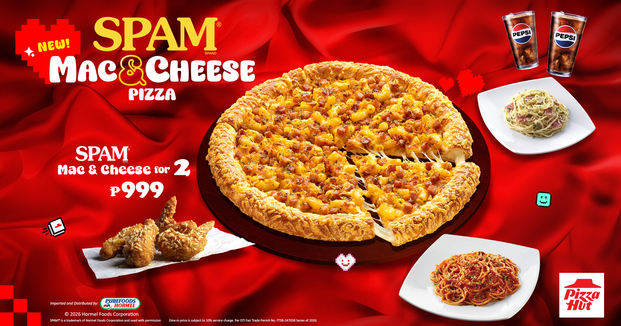 For a truly bold and flavorful Valentine’s Day feast, the new Spam Mac & Cheese Pizza is also included in four different bundle meals, offering numerous ways for you to enjoy this new creation from Pizza Hut!
