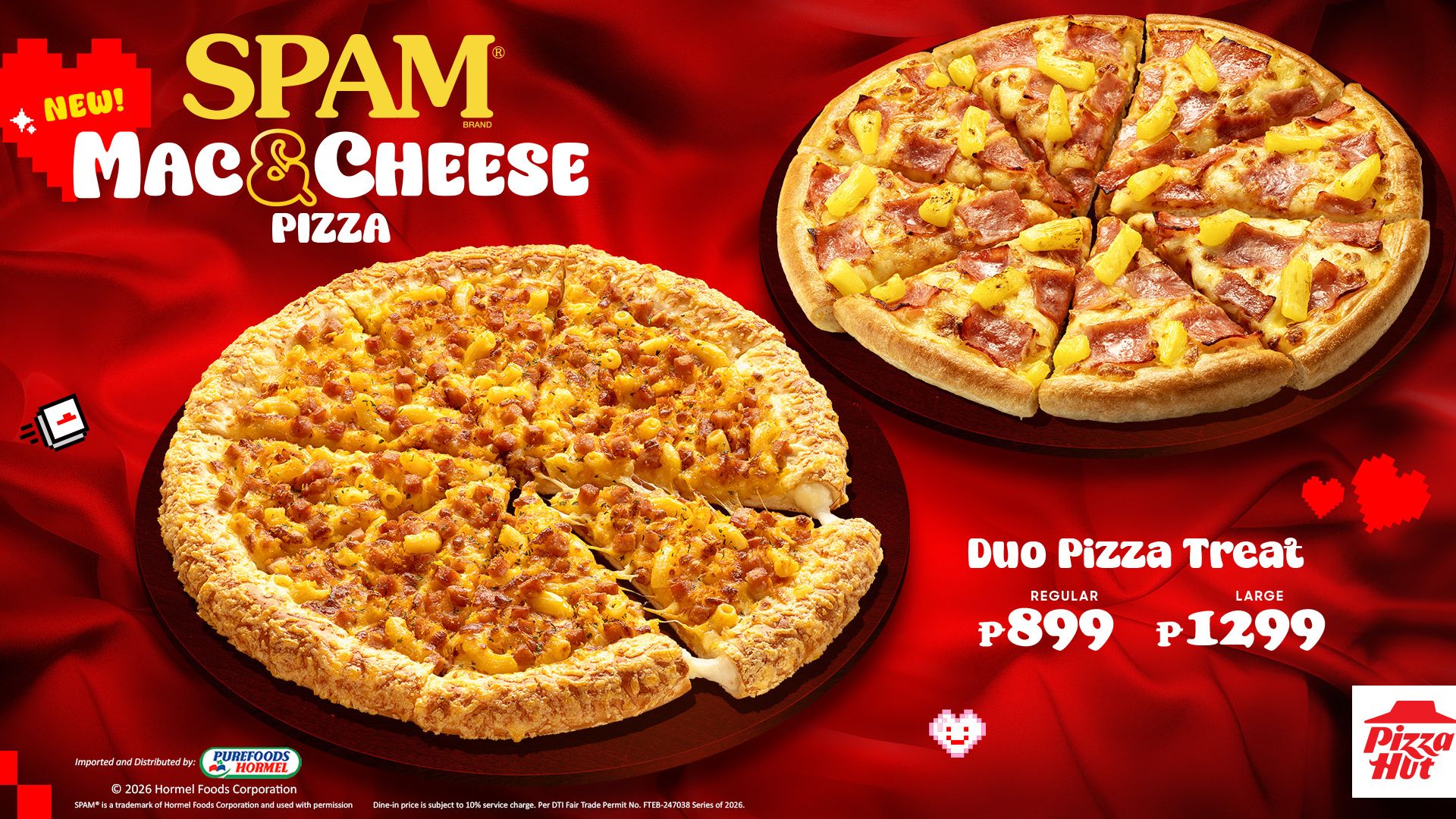 For a truly bold and flavorful Valentine’s Day feast, the new Spam Mac & Cheese Pizza is also included in four different bundle meals, offering numerous ways for you to enjoy this new creation from Pizza Hut!
